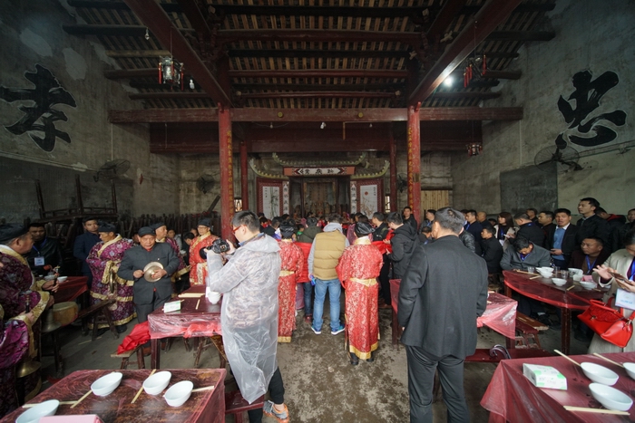 近日有瀟湘晨報湖南省紅網(wǎng)攜手東風(fēng)日產(chǎn)來(lái)郴組織的自駕游活動(dòng)及東江湖環(huán)保行動(dòng)。23日清晨自駕游車(chē)隊從長(cháng)沙城區浩浩蕩蕩的開(kāi)往了本次活動(dòng)的第一站永興板梁古村,參加本次活動(dòng)的共計有21臺車(chē)輛50余人。臨近中餐車(chē)隊順利抵達板梁古村,熱情的板梁村民準備了永興當地最原始的接待禮儀--周禮古宴。周禮古宴源于周朝的一種宴席禮儀,其淵源可追溯到周朝“三禮”之《儀禮》,經(jīng)過(guò)千百年流變,宴禮仍保留著(zhù)《儀禮》的主要程式,板梁古村挖掘整理出這一非遺文化遺產(chǎn)后穿越千年再續遺風(fēng),“周禮古宴”儀禮分接客、宴客、送客三部分,儀禮班子由司禮、司樂(lè )、司廚三部分組成,每逢行古宴之禮,村頭接龍橋上,行禮司儀會(huì )頭戴一字巾帽、身穿醬紅袖衫的歡喜迎客,吉祥童子則身著(zhù)圓領(lǐng)彩衣的列隊行鞠躬禮??腿税撮L(cháng)幼職序從上至下入座,祖廳傳杯,祝酒四杯,賀詞四輪。宴席三亭到位(寓意步步高升),大樂(lè )三曲為篇,唱贊三合成章,敬酒三巡成禮,菜肴三三加一。菜肴融合了粵菜、徽菜、湘菜的特色,號稱(chēng)“十碗葷”。固定的菜名、固定的上菜順序。是永興鄉間重大慶典活動(dòng)必遵的綜合性民俗儀禮。也是迎接貴賓最尊貴儀式。