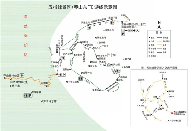 西門(mén)進(jìn)入方式:出發(fā)地—京港澳高速—宜連高速—黃沙出口—黃莽旅游公路—莽山西門(mén)。